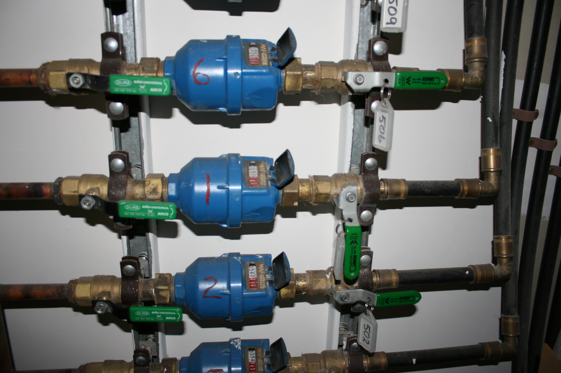 Your meter is tagged with your apartment number. If you have no water to your apartment, check your meter. If the line is open, the meter tap will align with the pipe.